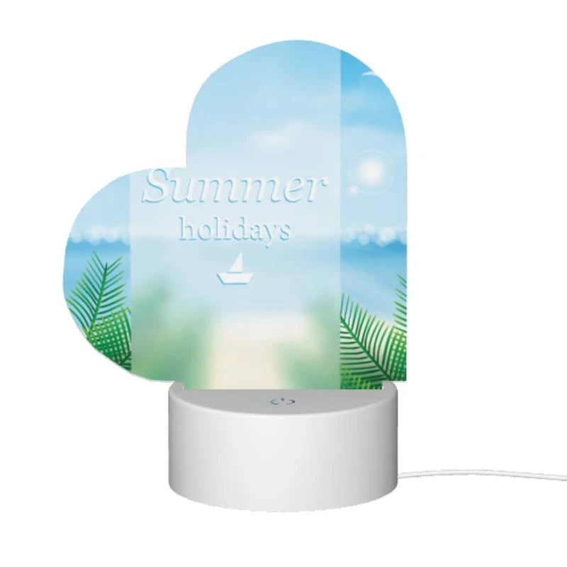 Love Acrylic Night Light, A Blue And White Image Of A Sailboat On The Ocean With The Words “Summer Holidays” Written On It.