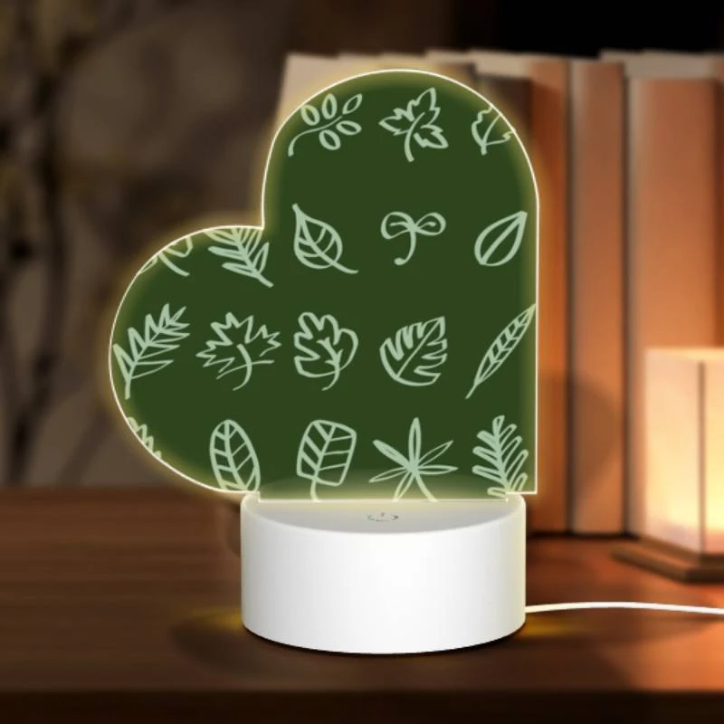Love Acrylic Night Light, A Collection Of Leaves In Various Shapes And Sizes.