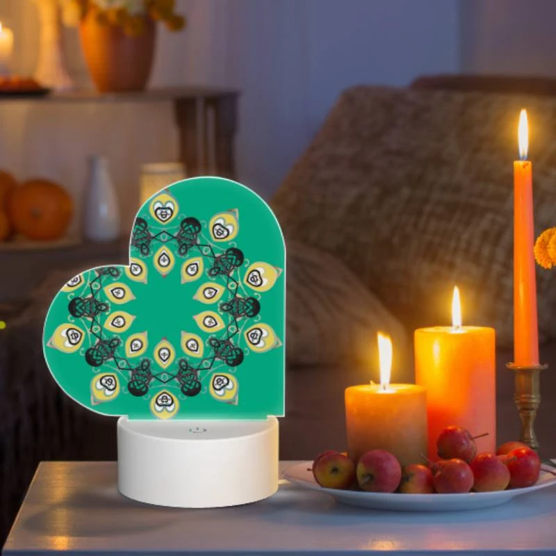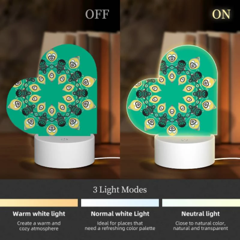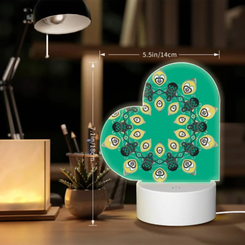 Love Acrylic Night Light, A Colorful Flower Pattern With Yellow Background.