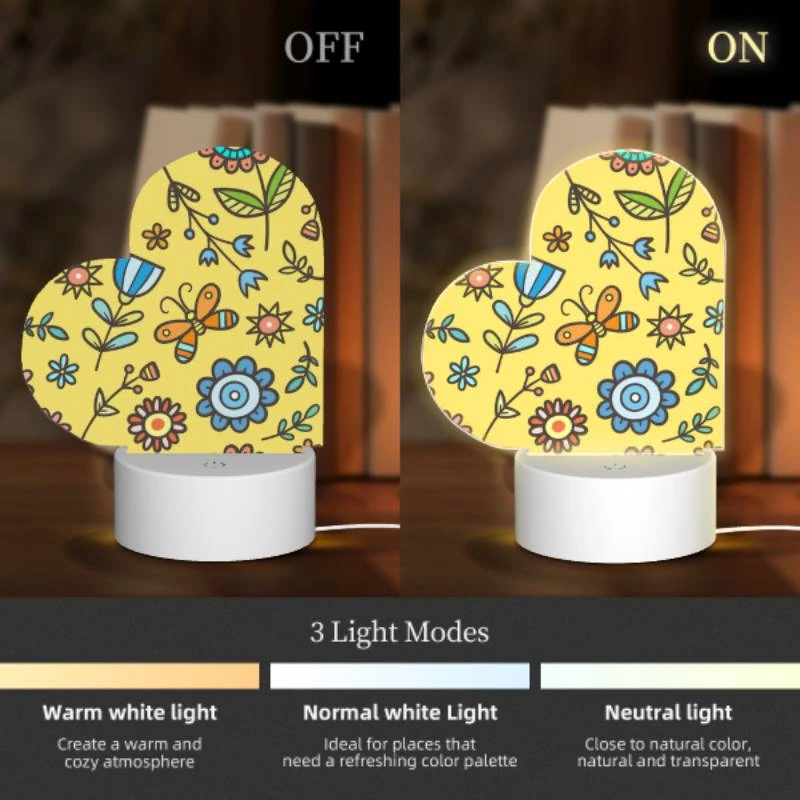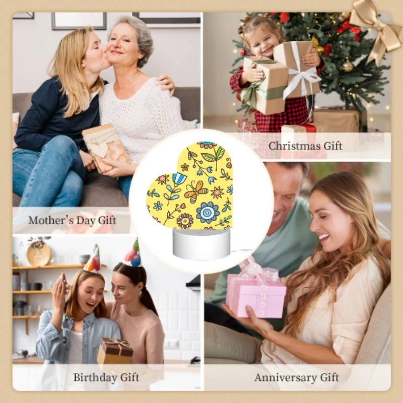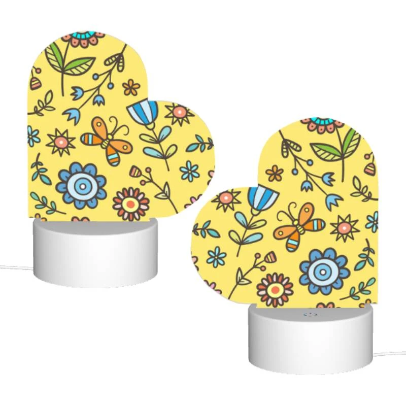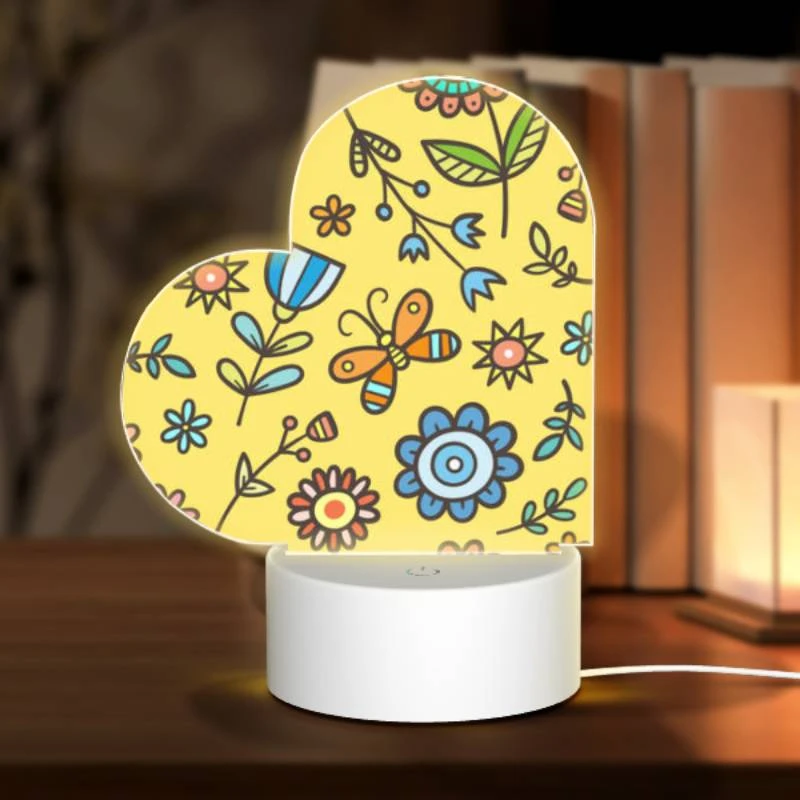 Love Acrylic Night Light, A Colorful Flower Pattern With Yellow Background.