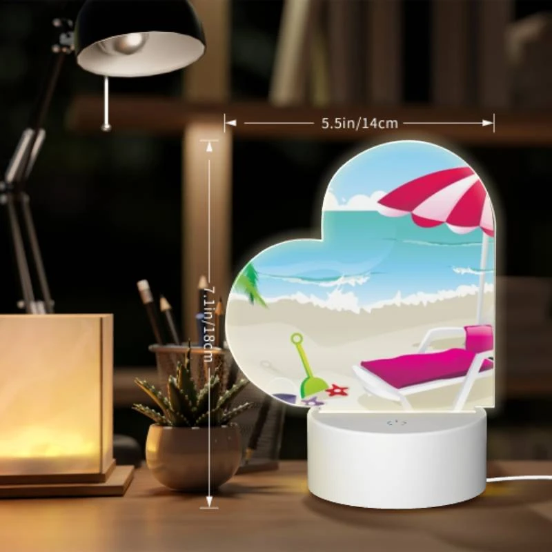 Love Acrylic Night Light, A Pink Umbrella Is Set Up On A Beach