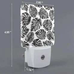 Night Light, A Pattern Of Black And White Leaves.