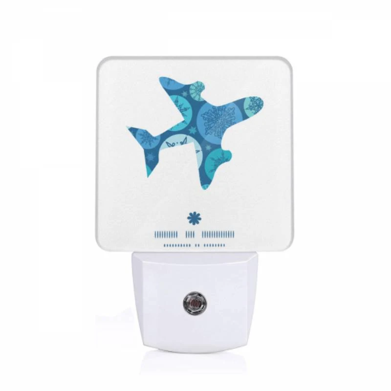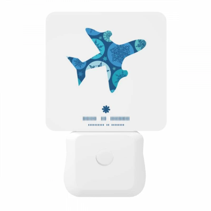 Night Light, A Blue And White Airplane With A Snowflake Pattern On The Tail.