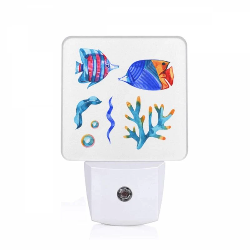 Night Light, A Colorful Fish And A Blue Fish Are Shown Together.