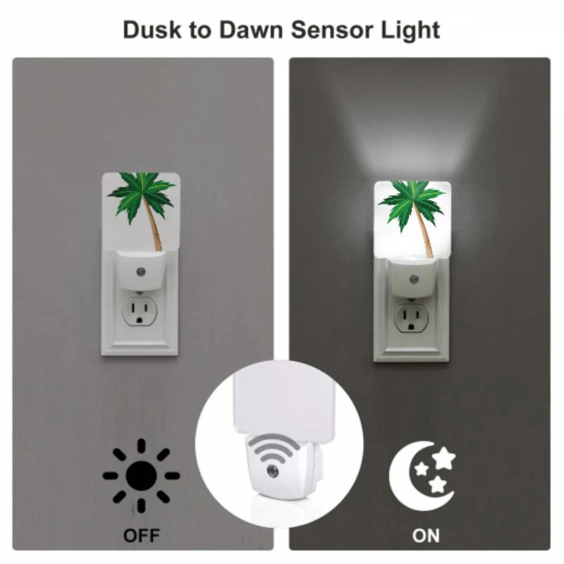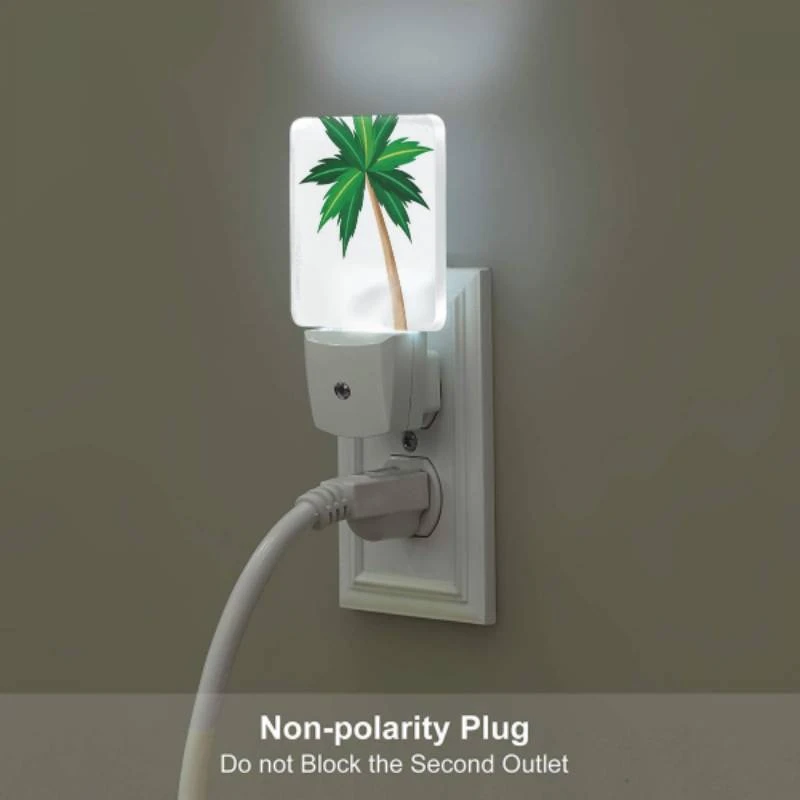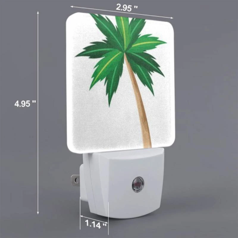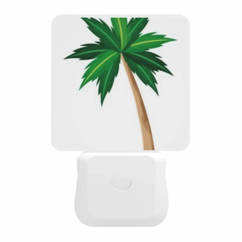 Night Light, A Green And Brown Palm Tree With A Brown Trunk.