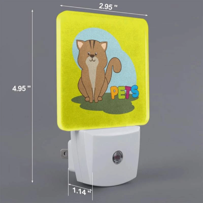 Night Light Set Of 2, A Cartoon Cat Is Sitting On The Ground And Says “Pets.”
