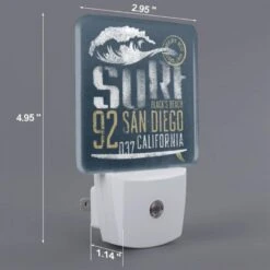 Night Light Set Of 2, A Surfboard With The Words "92 San Diego" Written On It.