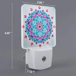 Night Light Set Of 2, A Colorful Blue And Purple Flower Design.