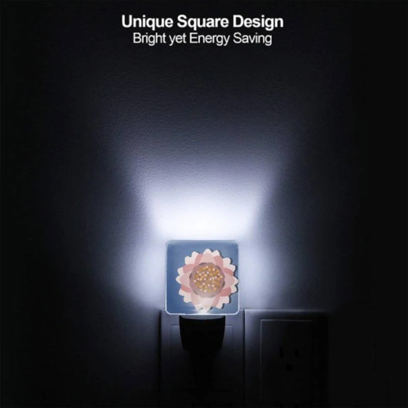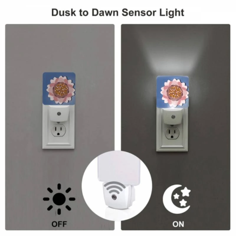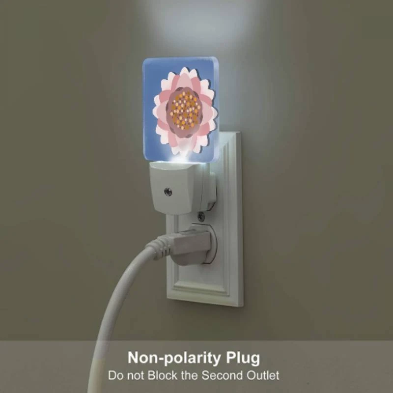Night Light Set Of 2, A Pink Flower With Yellow Pollen In The Center.