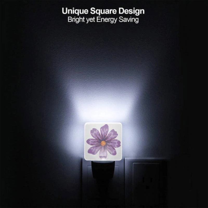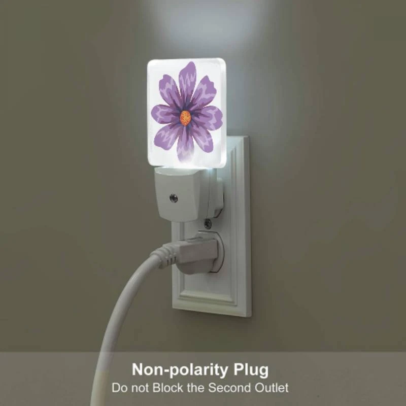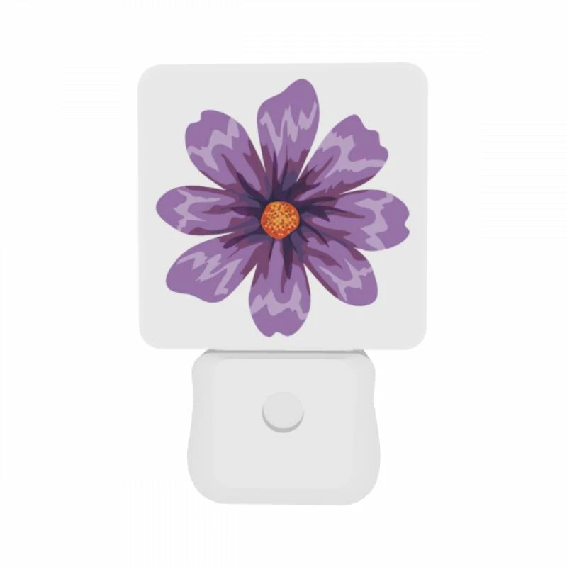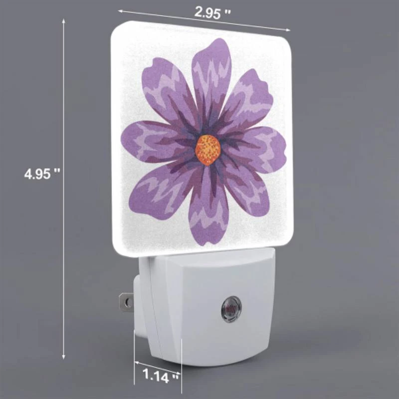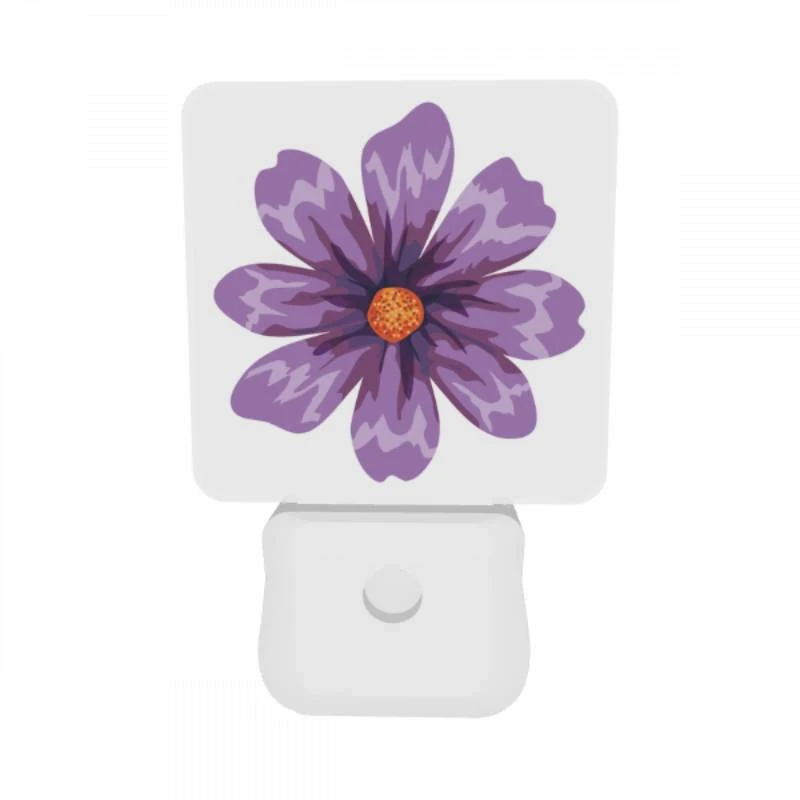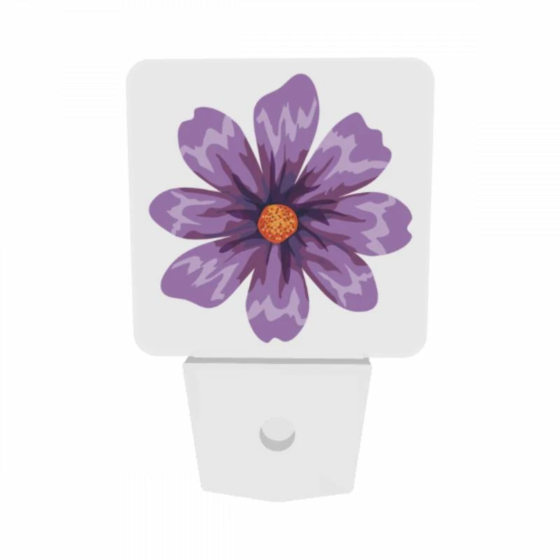 Night Light Set Of 2, A Purple Flower With An Orange Center.