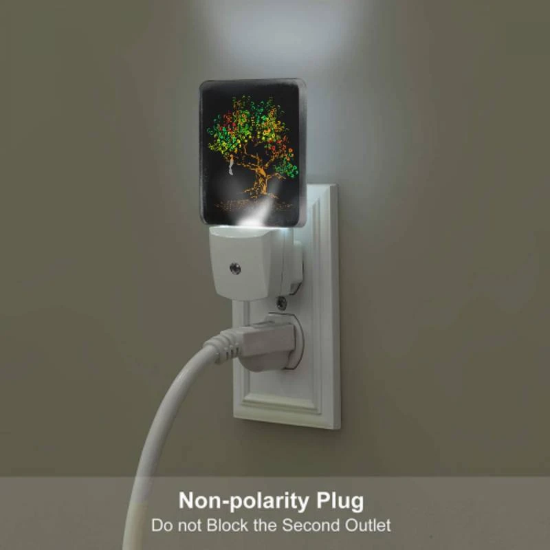 Night Light Set Of 2, A Woman Is Sitting In A Tree With A Colorful Background.