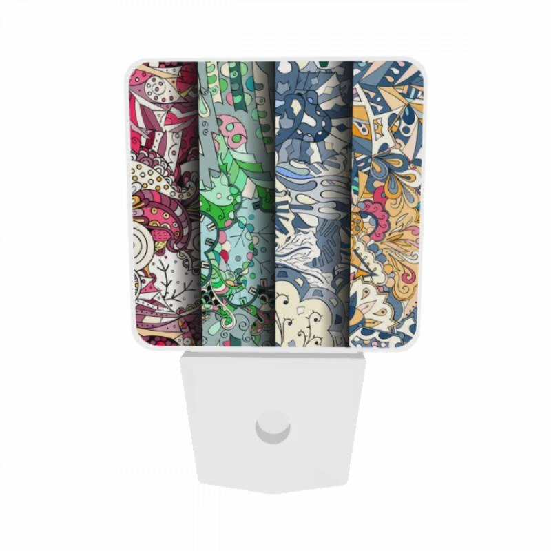 Night Light Set Of 2, A Colorful Floral Pattern With A Variety Of Flowers And Leaves.