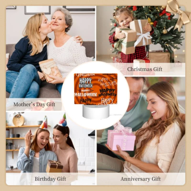 Rectangular Acrylic Night Light, A Happy Halloween Sign With A Gingerbread Man And A Spider.