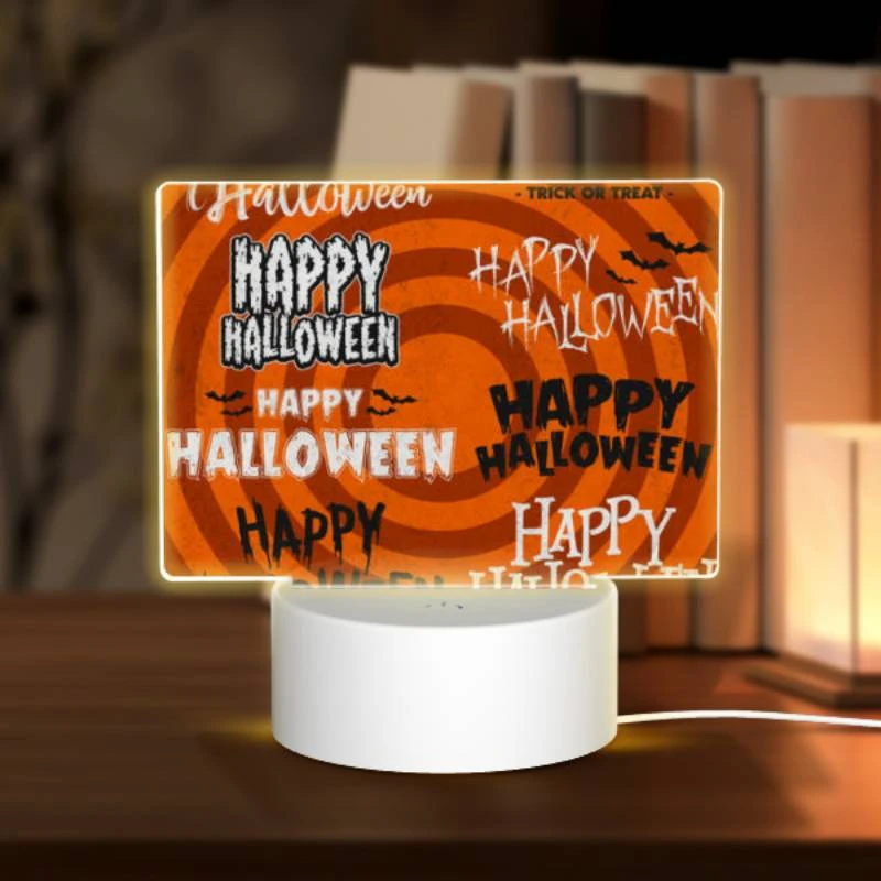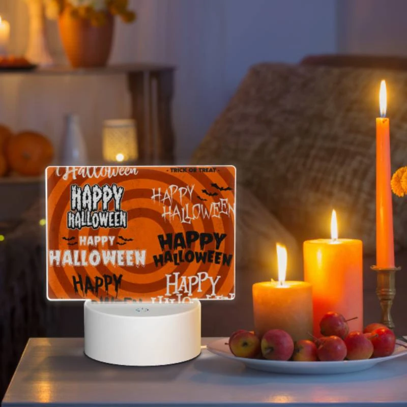 Rectangular Acrylic Night Light, A Collection Of Halloween Words On A Spiral.
