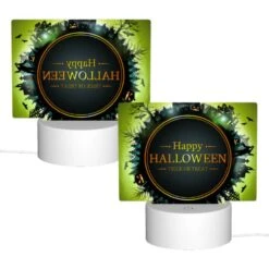Rectangular Acrylic Night Light, A Pumpkin With A Face On It Is Shown In Front Of A Haunted House.