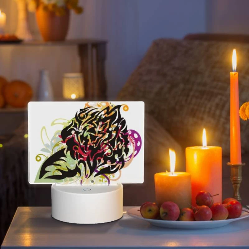 Rectangular Acrylic Night Light, Three Colorful Artworks Are Displayed Side By Side.