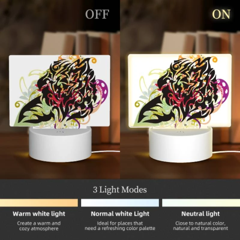 [Product Performance] The night light is composed of an acrylic light board and a plastic base. The night light has 3 light options (white light, warm light, warm white light). Touch to switch the light mode, which is soft and not dazzling, harmless to the eyes, and accompanies you into sweet dreams every night, creating a comfortable sleeping environment.