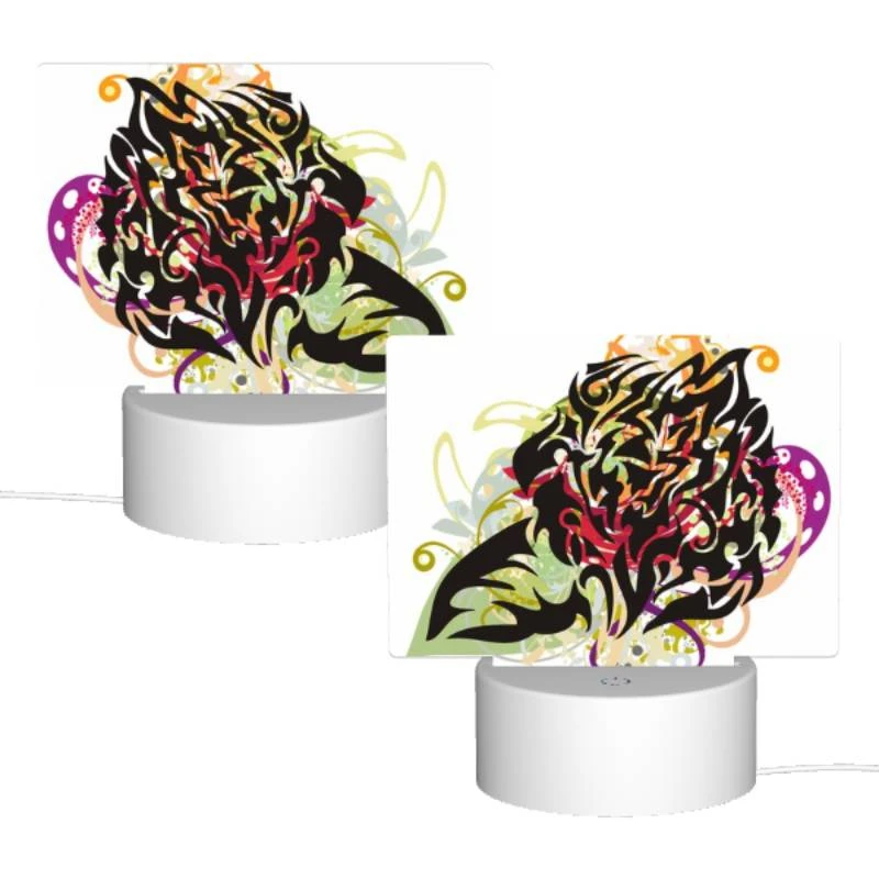 Rectangular Acrylic Night Light, A Colorful And Abstract Design Of A Face.