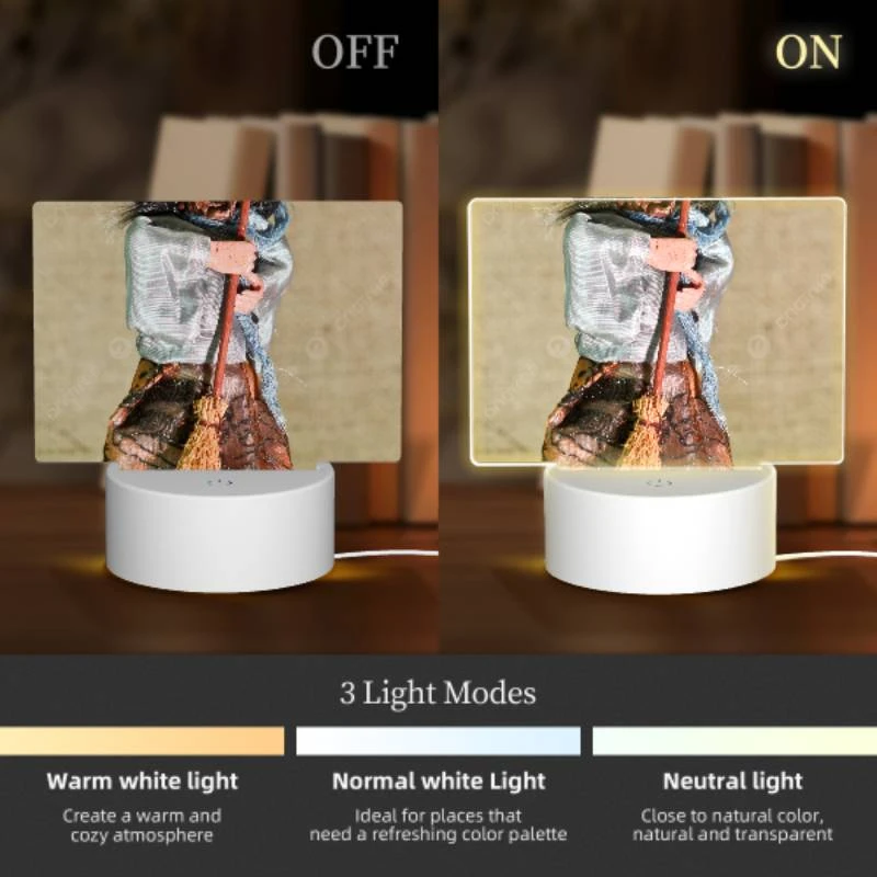 Rectangular Acrylic Night Light, A Doll With A Broom In Its Hand.