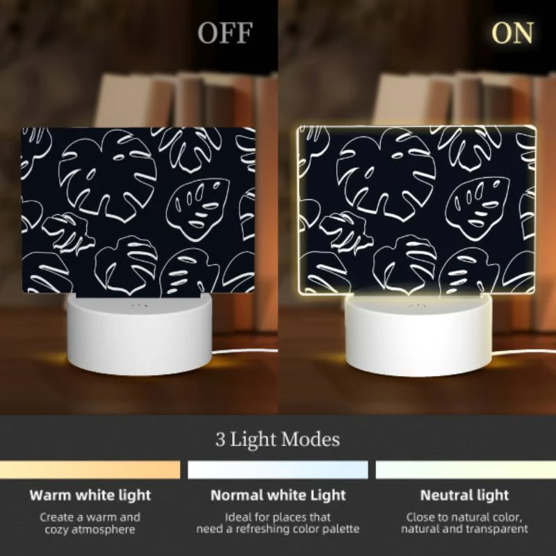 Rectangular Acrylic Night Light, A Pattern Of Leaves In Black And White.