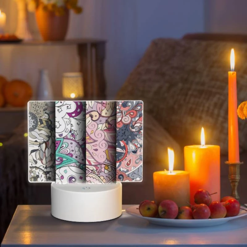 Rectangular Acrylic Night Light, A Colorful Pattern Of Flowers And Other Shapes.