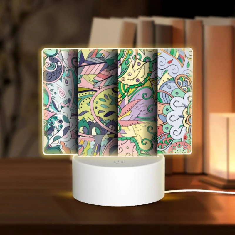 Rectangular Acrylic Night Light, Three Colorful Artworks Are Displayed Side By Side.
