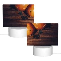 Rectangular Acrylic Night Light, A Happy Halloween Sign With A Gingerbread Man And A Spider.