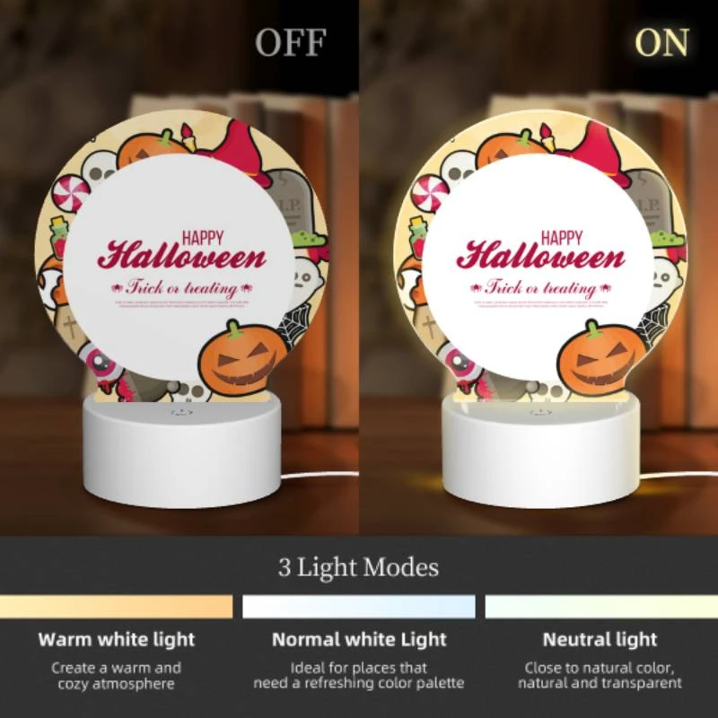 Round Acrylic Night Light, A Colorful Halloween Poster With A Round Circle In The Center.