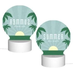 Round Acrylic Night Light, A Palm Tree Is Growing On A Small Island In The Middle Of The Ocean.
