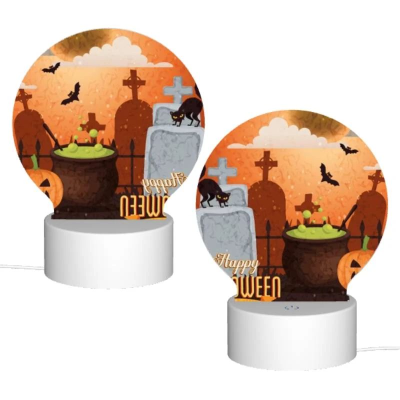 Round Acrylic Night Light, A Halloween Poster With A Cat