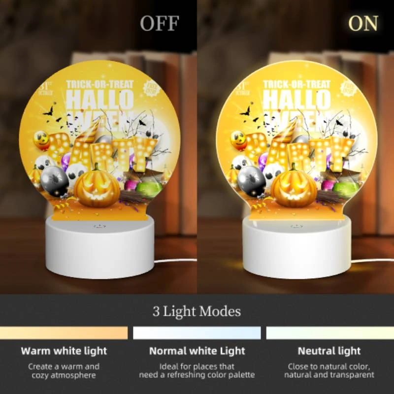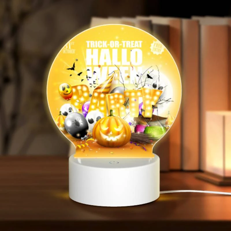 Round Acrylic Night Light, A Poster Advertising A Halloween Party.