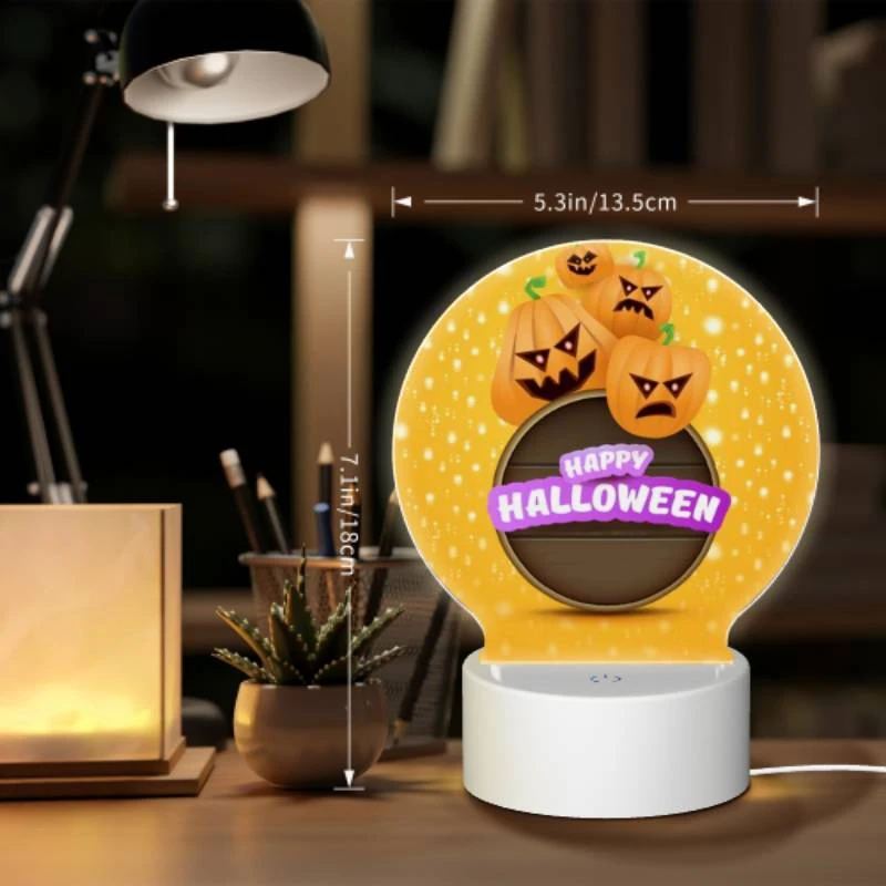Be the first to review “Round Acrylic Night Light, A Round Sign With A Bunch Of Pumpkins On It That Says “Happy Halloween”.” Cancel reply