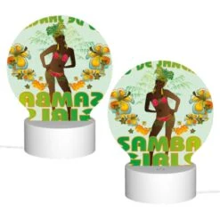 Round Acrylic Night Light, A Woman In A Bikini Is Posing For A Poster Advertising Rio De Janeiro.