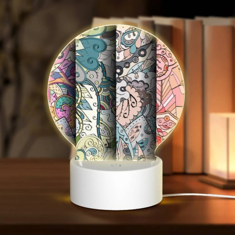 Round Acrylic Night Light, Four Different Colored Designs Of Swirls And Patterns.