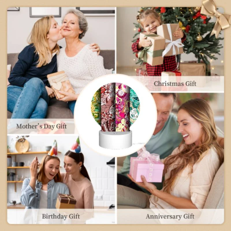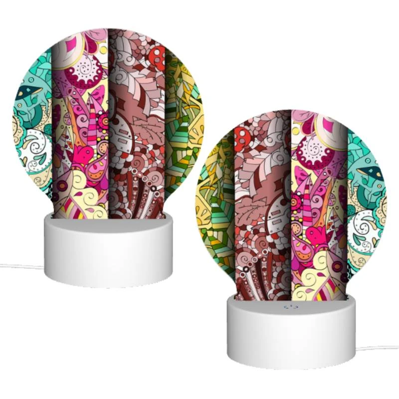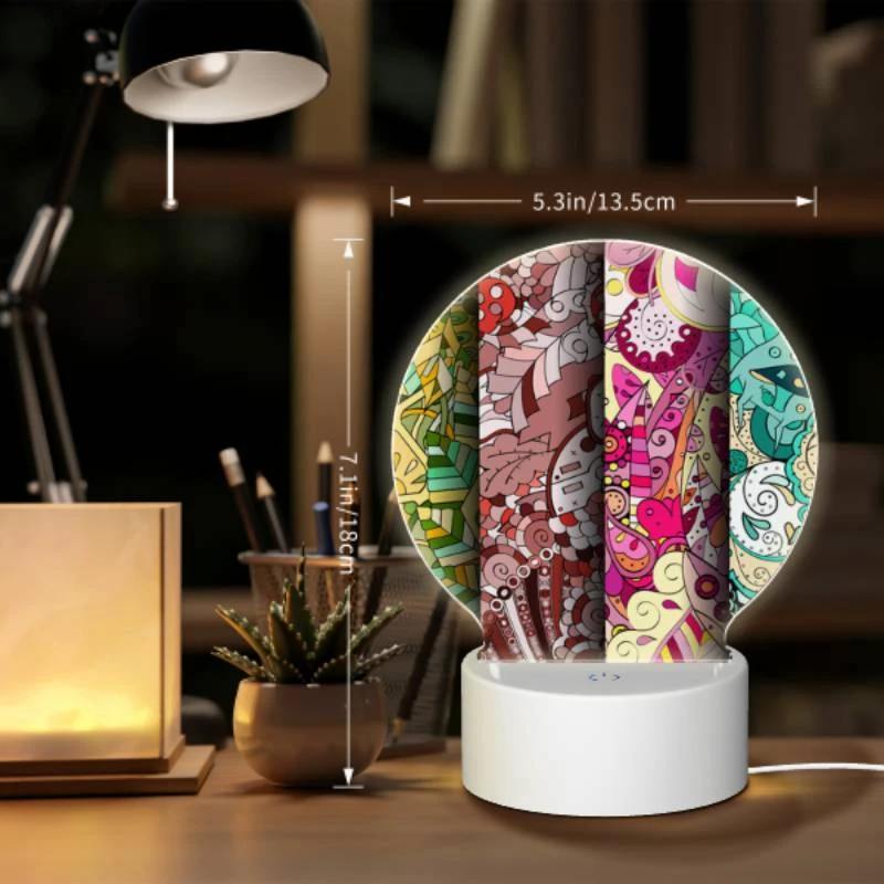 Round Acrylic Night Light, Four Different Colored Paintings Of Flowers.