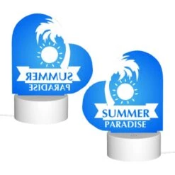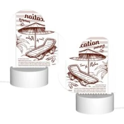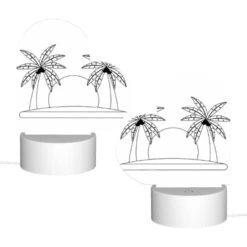 Love Acrylic Night Light, A Black And White Drawing Of A Hat With Two Palm Trees On Either Side.